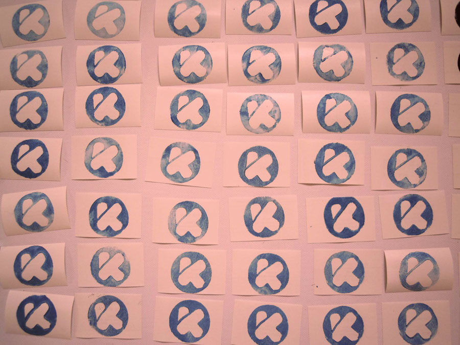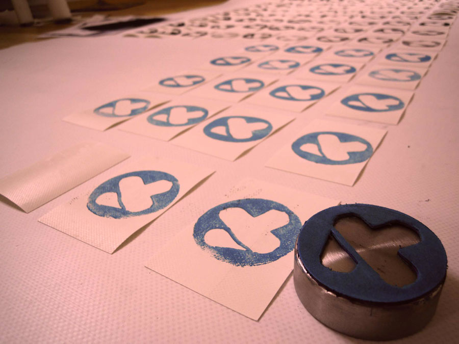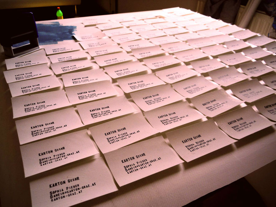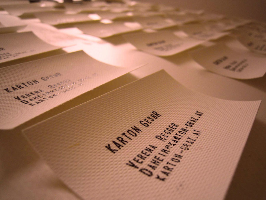 Jede Visitkarte wird zuerst mit dem Adressstempel versehen